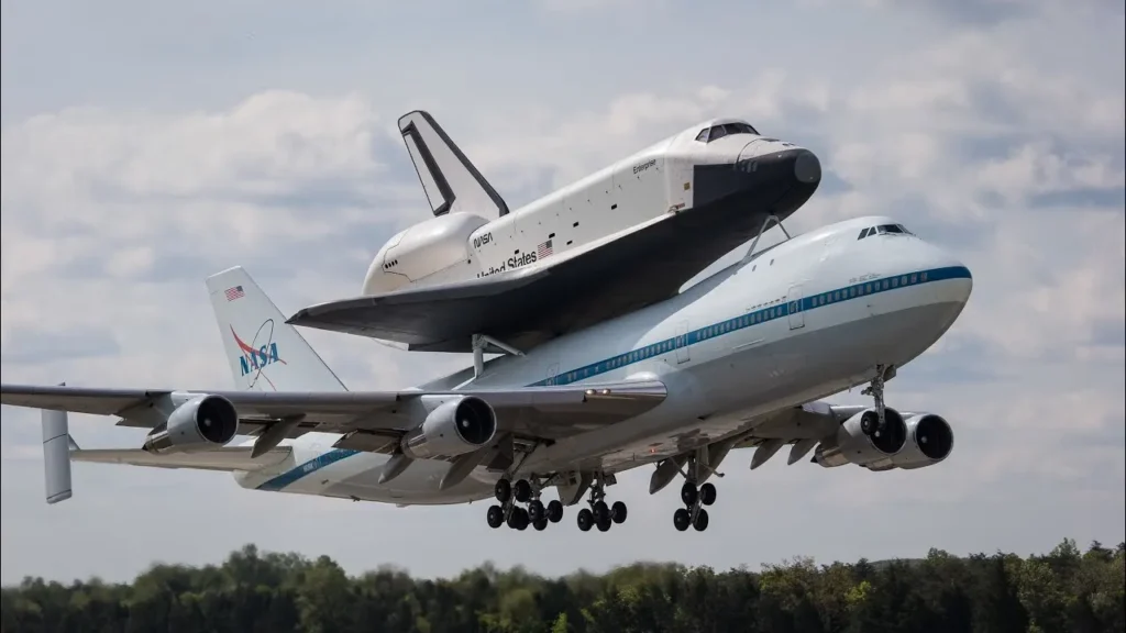 Dato curioso: Como el Transbordador no tenía motores propios para despegar o volar como un avión común, para moverlo de un estado a otro en la Tierra tenían que montarlo sobre un Boeing 747 modificado. Por eso siempre vemos esas fotos tan extrañas de un avión cargando a otro.